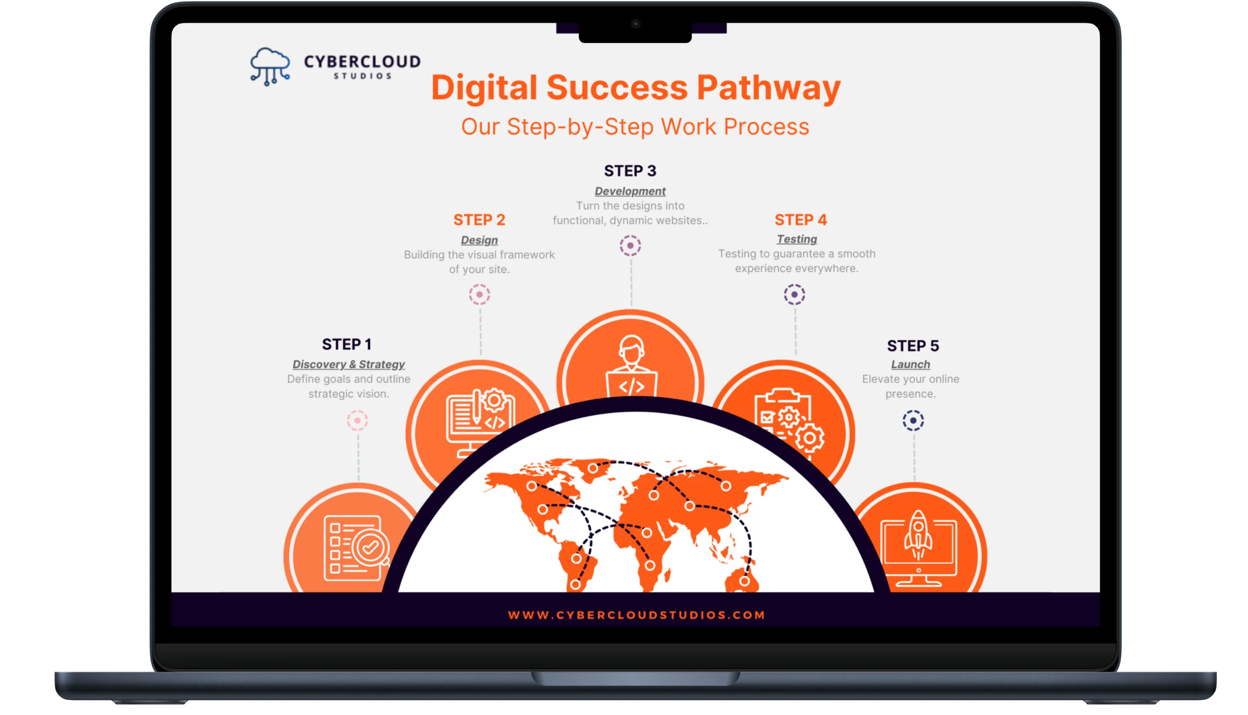 In an ever-changing digital world, achieving prominence demands a definitive strategy, meticulous execution, and relentless innovation. At Cyber Cloud Studios, our focus extends beyond mere website construction; we engineer online solutions that engage your target market and deliver tangible outcomes. Our work process is meticulously crafted to guide your project from initial idea to successful deployment and further.